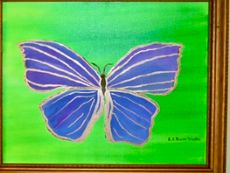 16 X 20 original oil painting on canvas (19X23 in a gold Leaf Frame). Oil painting with gold leaf accent. One of a pair of butterfly paintings.